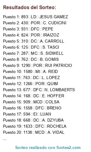 Resultados del sorteo: