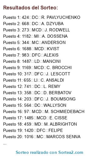 Lista de participantes: 345 EI A. YOUNG, 829 MCO ANDER HERRERA, 1500 POR B. GUZAN, 512 DC D. N'GOG, 747 MCD C. KABORE, 1499 LD L. YOUNG, 1005 POR DIEGO LOPEZ, 1504 MC F. DELPH, 1501 LD SERGIO SANCHEZ, 885 MI GAVILAN, 181 DFC FELIPE MELO, 814 DFC R. MARQUEZ, 452 DFC R. DUNNE, 46 MCD LUIZ GUSTAVO, 1505 MC J. LEDLEY, 927 DC R. SANTA CRUZ, 261 ED S. KALOU, 453 LI S. WARNOCK, 1502 DFC C. DAVIES, 1113 DFC W. SAMUEL, 395 POR C. GORDON, 21 DC C. OBASI, 321 MCO DAVID SILVA, 1184 EI E. LAVEZZI, 52 POR H. BUTT, 116 MCO JURADO, 1539 LD M. ODDO, 1536 POR RICARDO, 704 MC J. PLASIL, 875 MI ADRIANO, 701 DFC M. CIANI, 796 ED J. PITROIPA, 333 LD N. ONUOHA, 1538 DFC G. NIEDERMEIER, 268 DFC P. JAGIELKA, 1535 DFC O. ONYEWU, 1540 MCD SIMAO, 1537 DFC L. N'DIAYE, 325 DFC K. TOURE, 687 DC A. BUKHAROV, 1063 MCO A. COSSU, 1546 DC BENJANI, 157 LD C. FRITZ, 1545 LI E. PIETERS, 1199 DC F. MICCOLI, 211 POR K. VERMEER, 1542 LD L. DE SILVESTRI, 844 DC FALCAO, 1243 POR S. ROMERO, 910 DC TAMUDO, 624 MI Y. ZHIRKOV, 667 MC D. DE ZEEUW, 61 DFC N. SUBOTIC, 173 DFC DAVID NAVARRO, 1297 ED JEFFREN, 1118 MCO W. SNEIJDER, 1544 MCD E. ENOH, 1238 DC A. DI NATALE, 1139 MC A. PIRLO, 297 DFC J. CARRAGHER, 1547 LD G. HOYTE, 1552 DC JO, 865 MCO CESC FABREGAS, 1554 MCO M. COUTADEUR, 1467 DC NINO, 1550 LI P. GILBERT, 1548 LD PEDRO SILVA, 1166 MCO S. MAURI, 153 DFC A. FRIEDRICH, 414 MCO L. MODRIC, 1149 DFC L. BONUCCI, 471 MC A. RAMSEY, 969 DFC J. ESCUDE, 1182 MI A. DOSSENA, 765 DFC J. MENSAH, 1503 MCD MOISES HURTADO, 857 POR RICARDO, 1549 MC M. RANDALL, 349 MC D. FLETCHER, 1215 MCD D. DE ROSSI, 294 DC M. DEMBELE, 327 MC J. MILNER, 1520 POR RAUL, 1519 LD S. WHITTAKER, 335 LI W. BRIDGE, 1126 DC D. MILITO, 600 MCO ELANO, 1257 EI VARELA, 54 MCD A. TYMOSHCHUK, 827 DFC MIKEL SAN JOSE, 1523 MC ORBAIZ, 1430 DFC S. PRODL, 742 MI A. AYEW, 1521 DFC AITOR OCIO, 1522 MD DE MARCOS, 949 MCD L. DIARRA, 317 DFC J. LESCOTT, 929 POR CASILLAS, 884 EI DIEGO CASTRO, 553 DC LIEDSON, 779 DC M. ERDINC, 1507 MCO M. SHOJAEI, 1266 POR QUIM, 745 LD R. FANNI, 1047 LI T. TAIWO, 1106 DC ZE EDUARDO, 847 MC TIAGO, 931 DFC PEPE, 874 MCD S. KEITA, 391 MCD W. PALACIOS, 843 ED REYES, 323 DC S. AGÜERO, 693 DFC A. COULIBALY, 967 DFC M. CACERES, 1314 ED C. DELGADO, 1020 DFC G. RODRIGUEZ, 402 MI K. RICHARDSON, 172 MI V. STOCKER, 31 MCD S. ROLFES, 216 MCO C. ERIKSEN, 1611 DC BUENO, 1469 DC C. VELA, 1468 LD D. SCHWAAB, 192 DC F. CAVENAGHI, 29 LI M. KADLEC, 420 MC T. HUDDLESTONE, 1471 MCO S. FEGHOULI, 361 POR T. KRUL, 370 LI D. SANTON, 404 DC N. BENDTNER, 225 DFC DOUGLAS, 144 MC T. HITZLSPERGER, 28 DFC S. REINARTZ, 1292 DFC ANDERSON POLGA, 1229 MC G. D'AGOSTINO, 1082 POR A. BORUC, 1612 ED D. BISESWAR, 456 DC G. AGBONLAHOR, 1610 MC N. MATIC, 51 DC M. GOMEZ, 1470 MCD L. SINKIEWICZ, 1527 LD C. LELL, 311 LI FABIO AURELIO, 730 DC I. JELEN, 396 LD J. O'SHEA, 973 MCO P. TROCHOWSKI, 1526 POR T. KRAFT, 41 POR M. NEUER, 280 DC V. ANICHEBE, 1285 DC J. SAVIOLA, 776 MI NENE, 677 DFC N. LOMBAERTS, 531 MCD S. KARA, 53 DFC D. VAN BUYTEN, 799 MCD E. CAPOUE, 460 MC J. JENAS, 1525 DFC MARIO, 1367 ED Y. GOUFFRAN, 746 DC A. GIGNAC, 1345 MCD PUÑAL, 1553 EI A. DRIVER, 1114 LD MAICON, 1140 MD M. KRASIC, 410 DFC M. DAWSON, 1360 MCO ALFARO, 1358 LI C. RODRIGUEZ, 886 MCO CARLOS MARTINS, 1355 POR CODINA, 285 LI J. RIISE, 1356 LD M. CHALME, 640 POR I. AKINFEEV, 1167 DC M. KLOSE, 1551 LI A. TRAORE, 1581 DC F. CAMPBELL, 45 LD P. LAHM, 638 DC T. NECID, 1299 EI DIEGO CAPEL, 972 MCD G. MEDEL, 1354 DFC G. PALETTA, 1359 ED C. CHAVEZ, 1357 DFC A. MADLUNG, 383 DFC J. WOODGATE, 407 POR B. FRIEDEL, 1153 DC L. TONI, 1362 POR M. ZIEGLER, 1165 MCO HERNANES, 1364 MCO P. FOGGIA, 1365 LI PAREDES, 69 DC L. BARRIOS, 6 LD S. RIETHER, 75 DC M. ZIDAN, 1162 MC C. LEDESMA, 1449 LD NELSON, 679 MCD I. DENISOV, 915 MC JAVI MARQUEZ, 566 DFC ALEX SILVA, 582 MC TINGA, 656 MC C. NOBOA, 1283 DC O. CARDOZO, 1363 MC O. ENGELAAR, 1361 MC A. DA SILVA, 503 DFC G. CAHILL, 1034 DC A. CASSANO, 1628 LI C. M'BENGUE, 1141 MI E. ELIA, 177 MCO J. RIQUELME, 227 DC L. DE JONG, 584 MCO OSCAR, 808 POR U. RAME, 35 DC S. KIEBLING, 1324 DC A. STOKES, 266 POR T. HOWARD, 1006 DFC C. ZAPATA, 316 DFC V. KOMPANY, 1062 MC R. NAINGGOLAN, 287 MC S. SIDWELL, 913 MCD BAENA, 9 MCD PETIT, 1164 DC D. CISSE, 129 MCD Z. KUZMANOVIC, 1560 DC A. KONE, 1366 DFC L. RINAUDO, 896 ED JOAQUIN, 237 DC T. MATAVZ, 786 MI B. SAKO, 889 ED Y. MOLLO, 1341 MCO A. LJAJIC, 990 ED PABLO HERNANDEZ, 722 MCD R. MAVUBA, 1384 DC ARANDA, 324 DC C. TEVEZ, 1017 MCO CAMUÑAS, 734 LD AZPILICUETA, 1 POR K. TRAPP, 777 DC K. GAMEIRO, 408 LD K. WALKER, 1383 MCO S. HOFMANN, 1161 LI S. RADU, 920 DC W. PANDIANI, 34 MCO RENATO AUGUSTO, 1564 DC DIOGO, 1230 POR S. HANDANOVIC, 1226 MD TADDEI, 695 MCD D. NDINGA, 1382 DFC HENRIQUE, 1381 DFC MIGUEL FLAÑO, 631 MC P. MAMAEV, 594 EI LUAN, 1122 MCD T. MOTTA, 1176 DFC H. CAMPAGNARO, 1002 DC ADURIZ, 1374 MD D. SALPINGIDIS, 161 DC C. PIZARRO, 93 MCD G. KACAR, 1284 POR EDUARDO, 1372 LI GARRIDO, 1375 DC GUIZA, 165 LI M. SILVESTRE, 813 DC R. KEANE, 1177 DFC P. CANNAVARO, 382 DFC R. SHAWCROSS, 210 MCO VIEIRINHA, 319 MC Y. TOURE, 925 EI G. CASTRO, 1048 DFC D. BONERA, 1373 MC RICARDO, 417 DC E. ADEBAYOR, 470 MCD A. SONG, 735 DFC S. DIAWARA, 374 DC D. BA, 248 LI A. COLE, 632 MCO A. DZAGOEV, 862 LI E. ABIDAL, 255 POR HILARIO, 1473 DC JONATHAN PEREIRA, 111 MCO L. HOLTBY, 1621 POR S. LOACH, 193 LD V. TOROSIDIS, 938 MCO M. OZIL, 760 DC J. BRIAND, 1133 POR G. BUFFON, 64 MCD S. BENDER, 689 MD V. BYSTROV, 437 MC G. DORRANS, 346 DC W. ROONEY, 68 MI K. GROBKREUTZ, 1119 DC G. PAZZINI, 1472 MC L. BOWYER, 1620 DFC M. MANCIENNE, 1622 DFC S. BELL, 1349 DC L. KOZAK, 509 MCO M. DAVIES, 296 LD M. KELLY, 343 MCO T. CLEVERLEY, 1339 MCD S. N'ZONZI, 326 MCD N. DE JONG, 739 MCD B. CHEYROU, 231 POR A. ISAKSSON, 291 DC A. JOHNSON, 466 LD B. SAGNA, 1252 LI A. PEREIRA, 457 DC D. BENT, 652 DC F. CAICEDO, 1512 DC J. VAUGHAN, 839 LI FILIPE, 1511 LD T. HIBBERT, 1174 POR JULIO SERGIO, 548 DFC CHICAO, 5 DFC GEROMEL, 1011 MD CANI, 549 MC PAULINHO, 850 DFC MIRANDA, 1513 MC S. BATTAGLIA, 278 MI D. BILYALETDINOV, 676 
