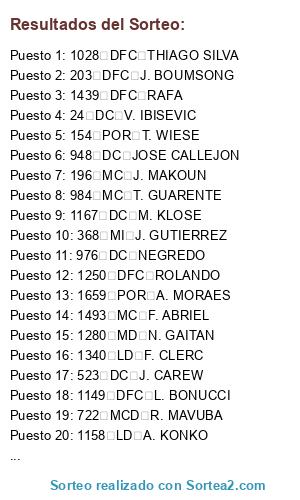 Resultados del sorteo:
