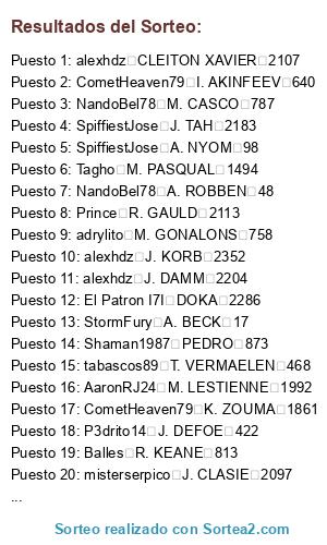 - JORNADA 19: 2096 W. VAINQUEUR sergiord14 Wolsfburgo