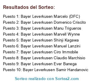 Lista de participantes: Bayer Leverkusen Marc Bartra, Bayer Leverkusen Jonas, Bayer Leverkusen Steve Mandanda, Bayer Leverkusen Shinji Kagawa, Bayer Leverkusen Manuel Lanzini, Bayer Leverkusen Manu Trigueros, Bayer Leverkusen Marcelo (DFC), Bayer Leverkusen Domenico Criscito, Bayer Leverkusen Ever Banega, Bayer Leverkusen Medhi Benatia, Bayer Leverkusen Daniel Caligiuri, Bayer Leverkusen Younes Belhanda, Bayer Leverkusen Samir Handanovic, Bayer Leverkusen Giuliano, Bayer Leverkusen Filipe Luis, Bayer Leverkusen Iago Aspas, Bayer Leverkusen Ciro Immobile, Bayer Leverkusen Marvell Wynne, Bayer Leverkusen Claudio Marchisio.