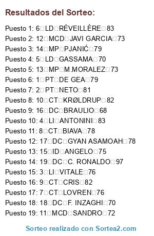 Resultados del sorteo: