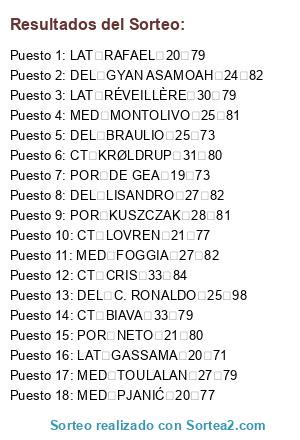 Resultados del sorteo: