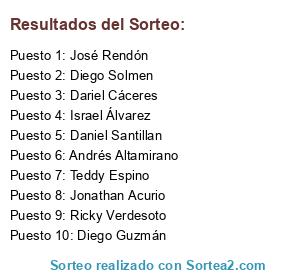 Lista de participantes: Daniel Santillan, Ricky Verdesoto, Diego Guzmán, Andrés Altamirano, Israel Álvarez, Diego Solmen, Dariel Cáceres, José Rendón, Jonathan Acurio, Teddy Espino.