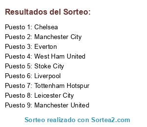 Lista de participantes: Arsenal, Chelsea, Manchester City, Manchester United, Liverpool, Tottenham Hotspur, Everton, Leicester City, Stoke City, West Ham United.