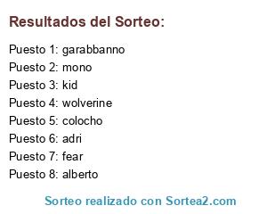 Lista de participantes: alberto, wolverine, fear, kid, adri, colocho, garabbanno, mono.