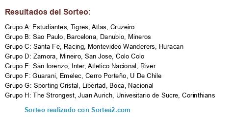 Lista de participantes: Huracan, Boca, River, San lorenzo, Racing, Estudiantes, Colo Colo, Mineiro, Santa Fe, Atlas, Danubio, Sao Paulo, Univesitario de Sucre, Cruzeiro, Mineros, U De Chile, Emelec, Inter, Montevideo Wanderers, Zamora, San Jose, Tigres, Juan Aurich, Libertad, Atletico Nacional, Barcelona, Guarani, Sporting Cristal, Cerro Porteño, The Strongest, Nacional, Corinthians.
