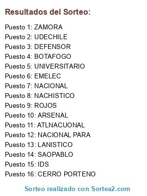 Lista de participantes: SAOPABLO, UDECHILE, ATLNACUONAL, LANISTICO, NACIONAL, EMELEC, BOTAFOGO, NACHISTICO, UNIVERSITARIO, ARSENAL, IDS, ZAMORA, NACIONAL PARA, CERRO PORTENO, ROJOS, DEFENSOR.