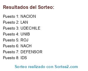 Lista de participantes: UDECHILE, DEFENSOR, UNIB, NACH, ROJ, NACION, LAN, IDS.