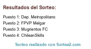 Lista de participantes: Mugrientos FC, ChileanSkills, FPVP Melgar, Dep. Metropolitano.