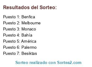 Lista de participantes: Besiktas, Benfica, América, Palermo, Bahía, Melbourne, Monaco.