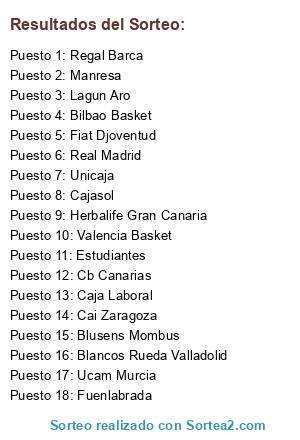 Lista de participantes: Unicaja, Blusens Mombus, Regal Barca, Real Madrid, Herbalife Gran Canaria, Valencia Basket, Cai Zaragoza, Caja Laboral, Fuenlabrada, Estudiantes, Bilbao Basket, Cajasol, Fiat Djoventud, Ucam Murcia, Blancos Rueda Valladolid, Cb Canarias, Manresa, Lagun Aro.