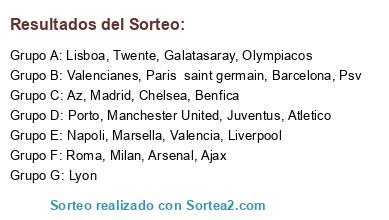 Lista de participantes: Barcelona, Madrid, Valencia, Atletico, Ajax, Az, Psv, Twente, Roma, Juventus, Milan, Napoli, Lyon, Marsella, Paris saint germain, Valencianes, Liverpool, Chelsea, Manchester United, Arsenal, Porto, Benfica, Lisboa, Olympiacos, Galatasaray.