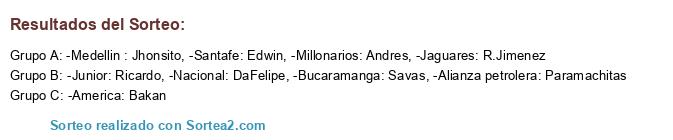 Lista de participantes: -Junior: Ricardo, -Alianza petrolera: Paramachitas, -Medellin : Jhonsito, -Millonarios: Andres, -Leones: Cartel, -Santafe: Edwin, -Real Santander: Brian, -Bucaramanga: Savas, -America: Bakan, -Nacional: DaFelipe, -Jaguares: R.Jimenez, -Cali: Lalo.