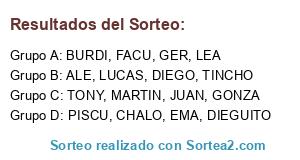 Lista de participantes: JUAN, BURDI, LEA, EMA, GONZA, CHALO, LUCAS, ALE, TONY, GER, DIEGO, DIEGUITO, FACU, PISCU, MARTIN, TINCHO.