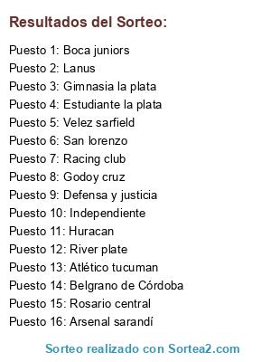 Liga argentina sorteo equipos