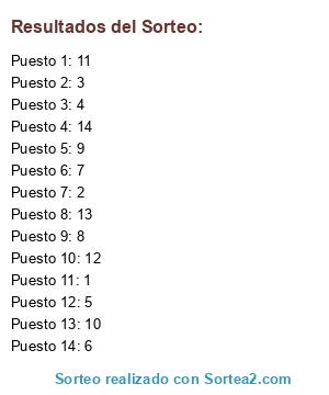 Resultados del sorteo: