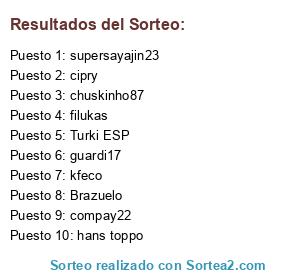 Lista de participantes: Turki ESP, guardi17, compay22, kfeco, hans toppo, supersayajin23, Brazuelo, chuskinho87, cipry, filukas.