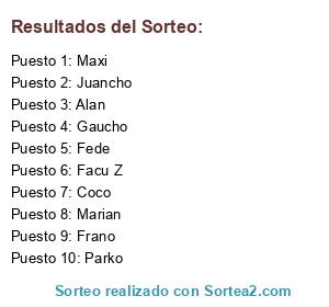 Lista de participantes: Alan, Fede, Gaucho, Maxi, Marian, Coco, Parko, Juancho, Frano, Facu Z.