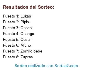 Lista de participantes: Micho, Zupras, Pipis, Chango, Choco, Lukas, Zorrillo bebe, Cesar.