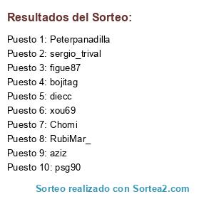 Lista de participantes: sergio_trival, figue87, Chomi, RubiMar_, diecc, aziz, Peterpanadilla, psg90, bojitag, xou69.