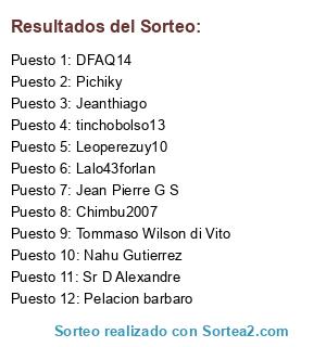 Lista de participantes: Tomii Guardiola, SIL MARTINEZ, Quilian Envape, Cbaballe, Agumarblanco, Ezeviera11, Lucho Mandirola_1, Fabrizio De 14, Jonathan Pica, blackjakc.