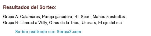 Lista de participantes: Calamares, Pareja ganadora, Mahou 5 estrellas, RL Sport, Otros de la Tribu, Usera´s, El eje del mal, Liberad a Willy.
