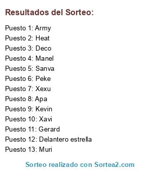Lista de participantes: Xexu, Xavi, Peke, Apa, Army, Deco, Gerard, Heat, Sanva, Kevin, Manel, Muri, Delantero estrella.
