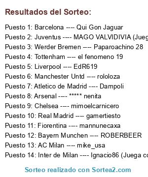 Resultados del sorteo: