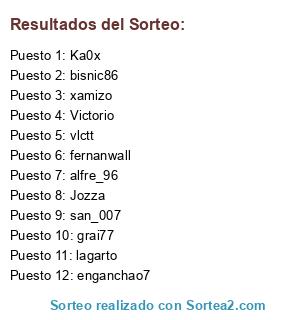 Lista de participantes: grai77, san_007, Victorio, enganchao7, xamizo, alfre_96, bisnic86, lagarto, Jozza, Ka0x, fernanwall, vlctt.