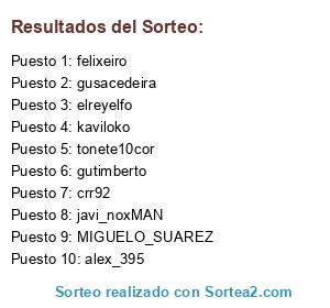 Lista de participantes: MIGUELO_SUAREZ, elreyelfo, gutimberto, crr92, gusacedeira, tonete10cor, felixeiro, javi_noxMAN, alex_395, kaviloko.