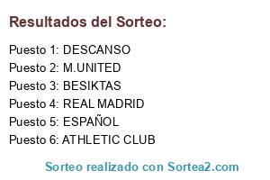 Lista de participantes: M.UNITED, BESIKTAS, REAL MADRID, ESPAÑOL, ATHLETIC CLUB, DESCANSO.