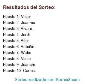 Lista de participantes: Aitor, Alvaro, Webo, Antoñin, Carlos, Jordi, Juanchi, Juanma, Victor, Vacio.