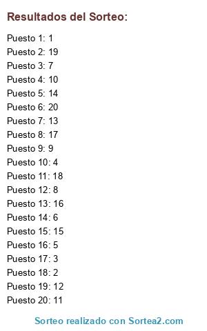 Resultados del sorteo: