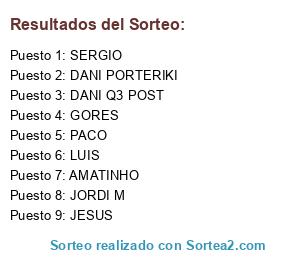 Lista de participantes: JORDI M, LUIS, PACO, GORES, DANI Q3 POST, SERGIO, AMATINHO, JESUS, DANI PORTERIKI.