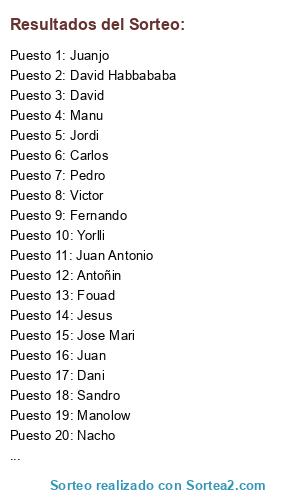 Resultados del sorteo: