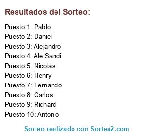 Lista de participantes: Richard, Alejandro, Daniel, Pablo, Henry, Fernando, Nicolas, Antonio, Carlos, Ale Sandi.