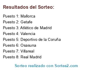 Lista de participantes: Atlético de Madrid, Real Madrid, Deportivo de la Coruña, Osasuna, Valencia, Villareal, Mallorca, Getafe.