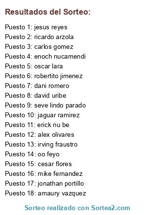 Lista de participantes: ricardo arzola, enoch nucamendi, jonathan portillo, dani romero, carlos gomez, alex olivares, david uribe, mike fernandez, oo feyo, irving fraustro, jaguar ramirez, jesus reyes, cesar flores, erick nu be, seve lindo parado, robertito jimenez, oscar lara, amaury vazquez.