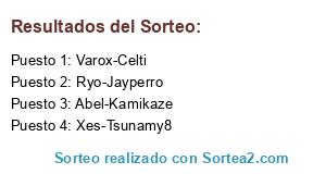 Lista de participantes: Varox-Celti, Ryo-Jayperro, Abel-Kamikaze, Xes-Tsunamy8.