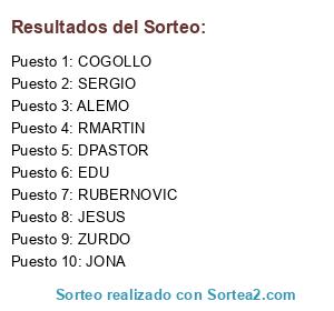 Lista de participantes: ZURDO, DPASTOR, RUBERNOVIC, RMARTIN, ALEMO, JONA, EDU, SERGIO, JESUS, COGOLLO.