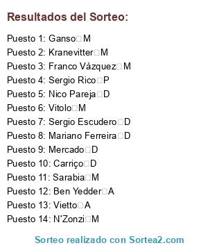 Resultados del sorteo: