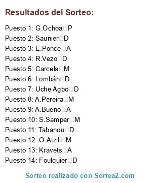 Resultados del sorteo: