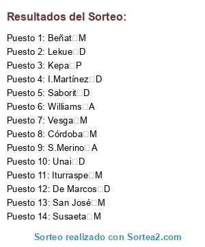 Lista de participantes: Beñat M, Córdoba M, De Marcos D, I.Martínez D, Iturraspe M, Kepa P, Lekue D, S.Merino A, Saborit D, San José M, Susaeta M, Unai D, Vesga M, Williams A.