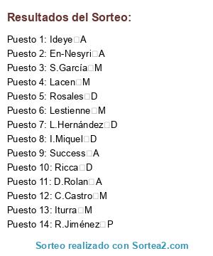 Resultados del sorteo: