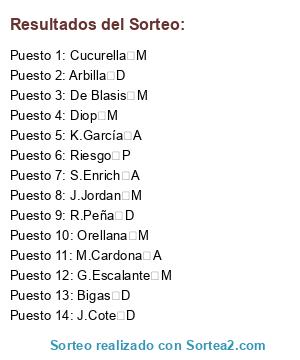 Resultados del sorteo: