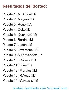 Resultados del sorteo:
