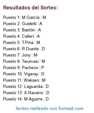 Resultados del sorteo: