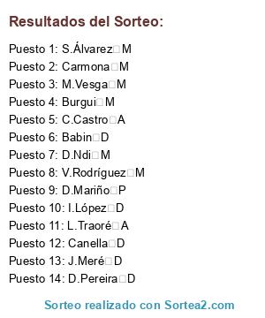 Resultados del sorteo: