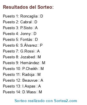 - Puesto 1: Roncaglia D